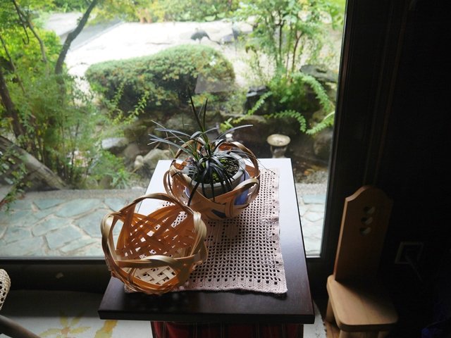 母作の竹籠にはさっそく紫陽花の鉢が入れられていました。なかなか素敵!私は何をいれようかな。