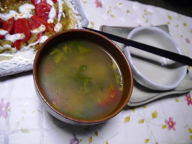 セロリのスープ。母は飲まず、兄もあまり飲まないので、何か汁ものが欲しくなります(私は当然一人ガンガン飲んでましたが、、、)。