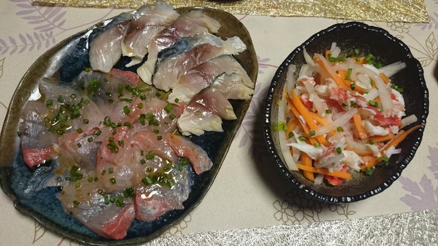 3日目はカンパチagain。でも今回は出汁を昆布と鰹節、そしてするめにしてあご出汁はなしに。カンパチは塩をして軽く焼いてから入れました。そして初めていくらをトッピング。彩も綺麗だし美味しい。これからいくらトッピングはありかな。