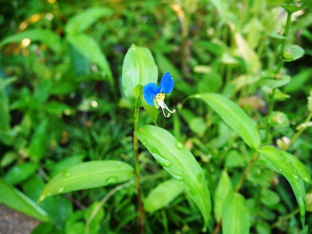 庭でつゆ草発見!懐かしい。まさに露に濡れています。