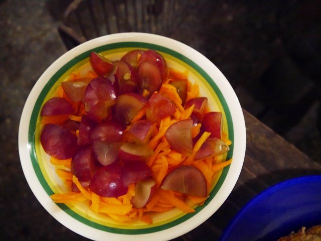 これは人参のしりしり風ラぺ。皮ごと食べられる葡萄をたっぷりトッピングしました。