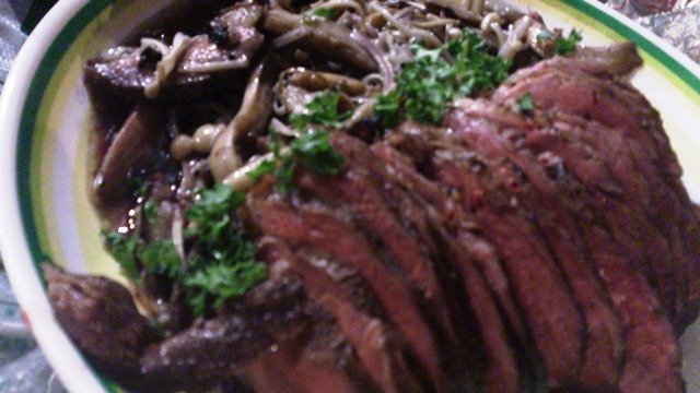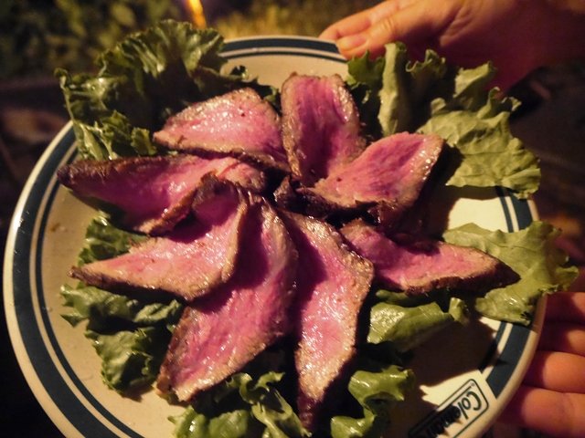 こちらはワインビーフ。玉ねぎのすりおろし、りんごのすりおろしに醤油、赤ワイン、砂糖を加えたタレにマリネしてから焼きました。