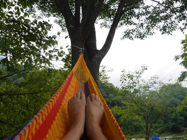 お友達夫婦がお買いものに行っている間、ハンモックでお昼寝。