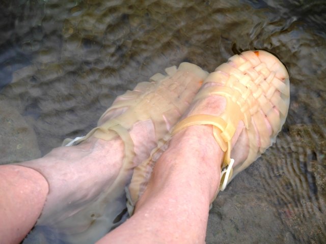 河に足をつけてみる。冷たくて気持ちいい〜。つい一週間前は海で遊んでいて、翌週は川。