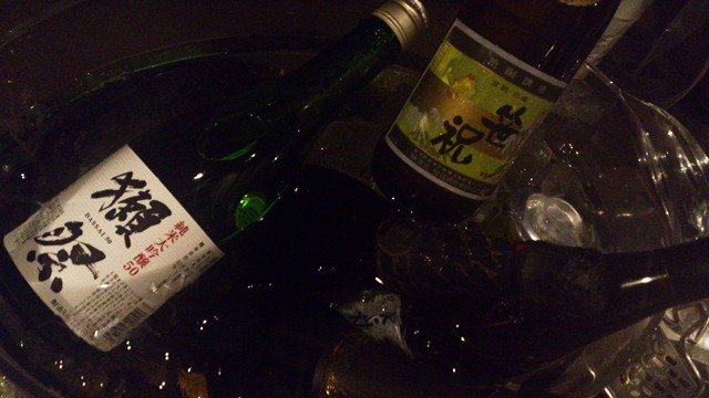 メンバーの差し入れ獺祭と、私の差し入れ笹祝い。あと一升瓶の長野のひやおろしの差し入れもあったのですが、日本酒もどんどんと空いていきます。