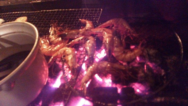 海老はレモンバジルとガーリックとオリーブオイルでマリネして炭火焼。