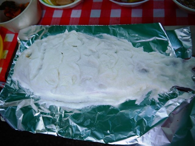 鯛の塩釜焼き出来上がり。ちょっと時間置き過ぎてしょっぱくなってしまった。