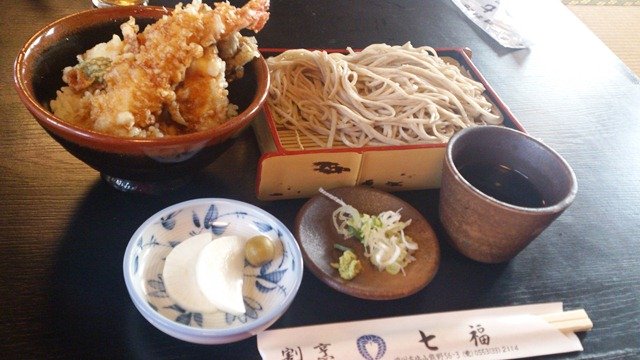 さて皆で遅めのランチでも、ということでスマホで調べて塩山の割烹七福へ。まずは馬刺しと信州木曽の地酒、七笑。さすがにあまり飲めなかったけれどちゃんと一口は頂きましたよ。馬刺しには焼酎もいいけれど日本酒もやっぱり合います。