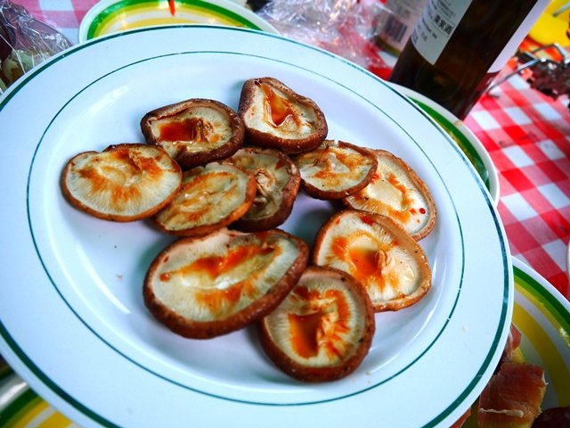 炭火焼椎茸にレモンと醤油。これだけで、幸せな気分、バーベキュー万歳!という感じになります。