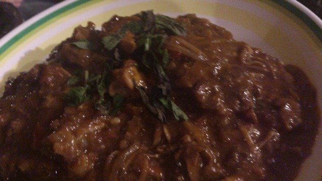 魚の唐辛子煮込み。魚はぎんだらだったのかな。脂がのっていて柔らかい。そしてスープは見た目ほど辛くなくて、油もたくさんつかっているせいかマイルドで後をひく味。