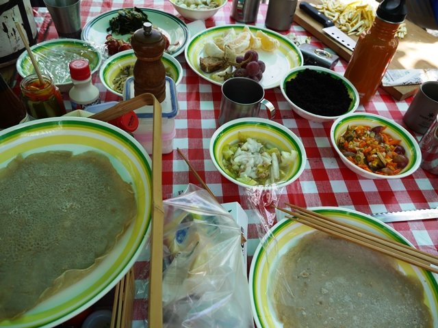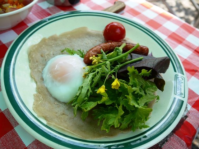 キャンプサイトに戻ると、ヨガに参加しなかった長野の友達が蕎麦粉ガレットを焼いて待っていてくれました!