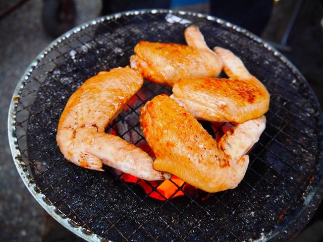 あと、手羽先にテキサスシャンパン(チリソース)とバターを和えて炭火焼きにしてもらったりしました。