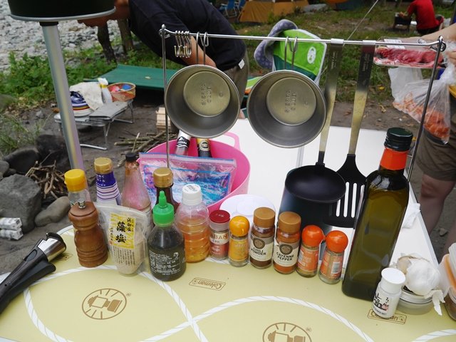 昼食に備えて持ってきた調味料を並べてみました。