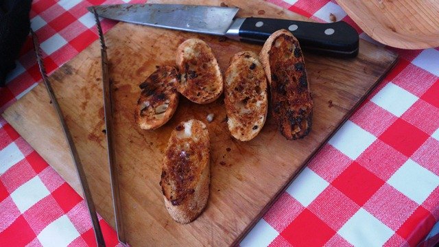 お友達が家から作ってきた塩麹入りのパテを、お友達の旦那様がじっくりと炭火で焼いて。
