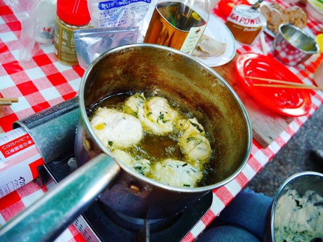 Mayugebaさんがゼッポリーニを揚げてくれました!初めて食べたのは2年前の泡暴走キャンプ@房総かな。とにかく感動の味なのです。