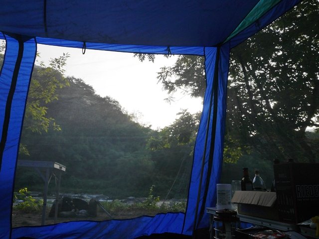 私はタープの中でコットで寝ましたが、ぐーっすり寝て6時には目が覚めました。