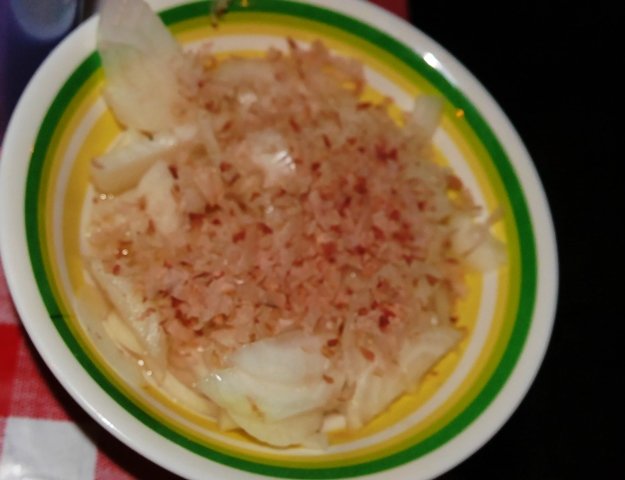 写真がぼけていてアップできなかったのですが、お友達が持ってきてくれた水俣のレタス玉ねぎに白ぽんずとかつおぶしを乗せただけのものも美味しかった〜♪