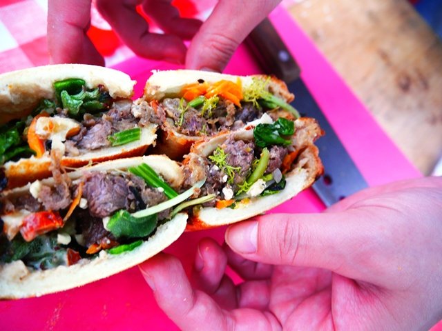 こちら、バゲットの中にはコンビーフとクリームチーズを混ぜたものを詰めて、上からミント。彩も綺麗だし、味も美味しい。