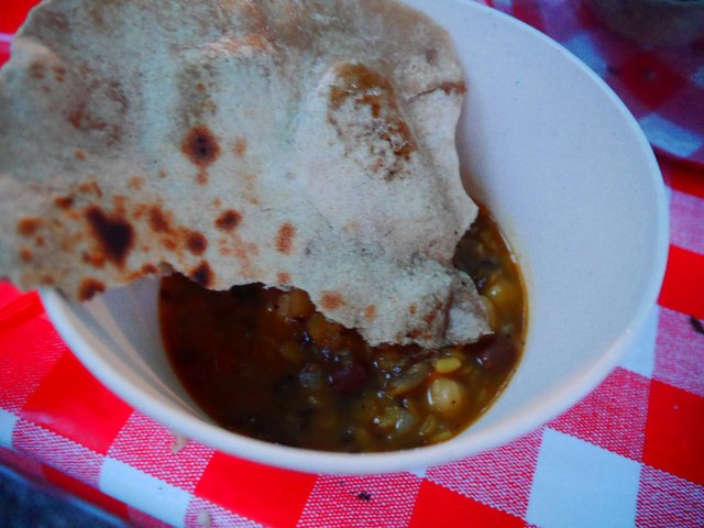 ご近所に住む友達は豆カレーを現場で作ってくれました。みんな作り方を習いたくて鍋の周りに集合。
