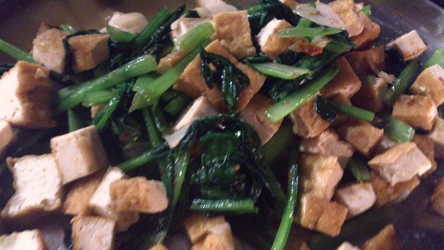 タイのレモングラススパイスミックスがあったので、小松菜と厚揚げを炒めてみました。
