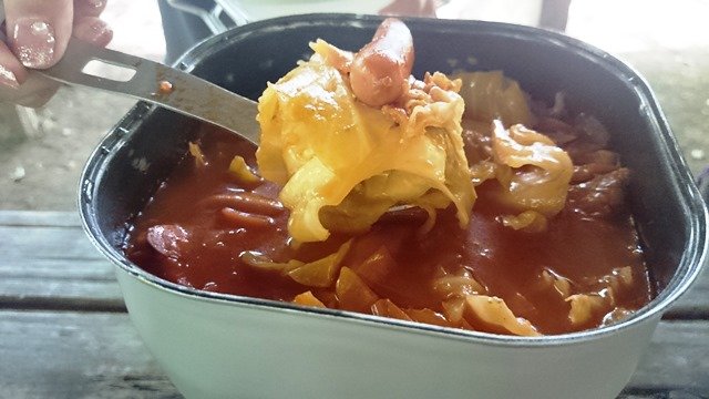 そして、キャベツとソーセージ入りのボルシチ。これがまた優しい味で心身に染みわたる感じ。