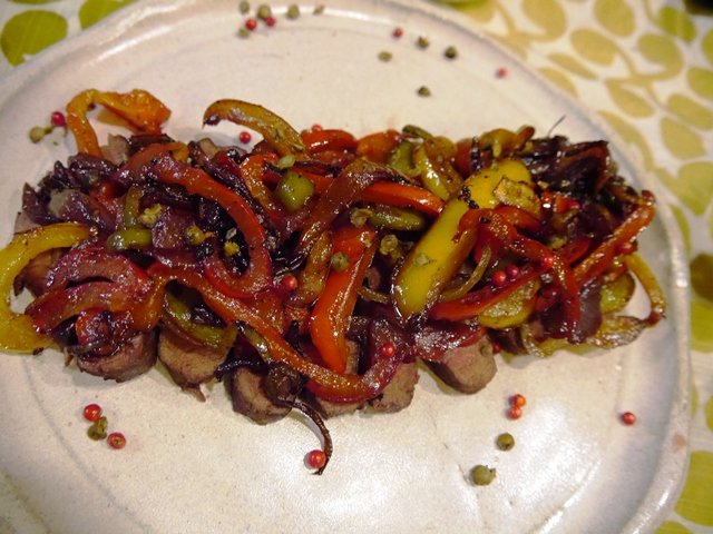 それを自家製のローストビーフの上に乗せて、バルサミコベースのソースで。