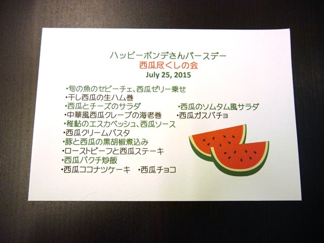 西瓜大好きなお友達のリクエストによる西瓜フルコースでお祝いするバースデー。