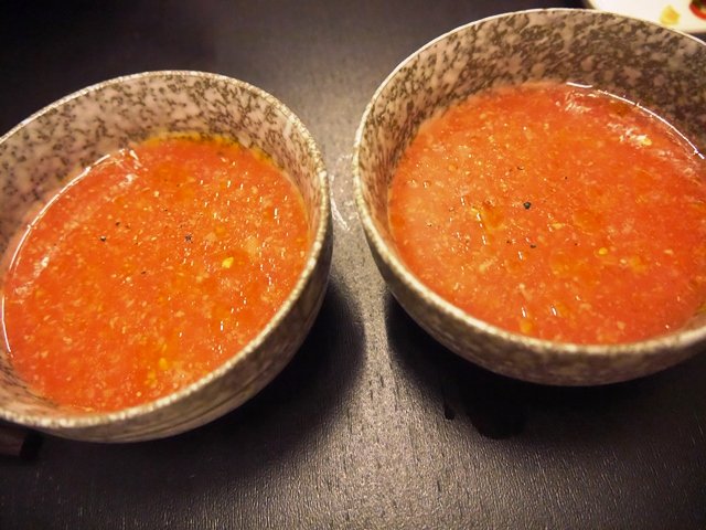 西瓜のガスパチョ。これは前回も作りました。トマトだけよりもすっきりとして、ほんのりとした甘さが程よく、美味しいように思います。