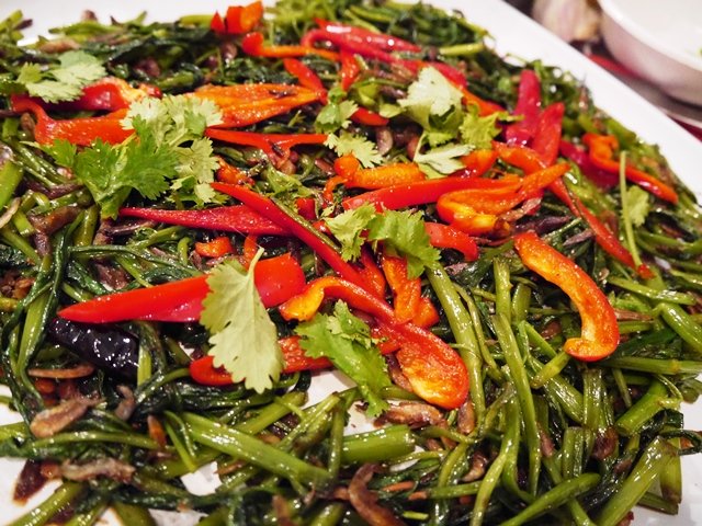 カンコンバラチャン。空芯菜をバラチャン(海老ペースト)で炒める予定でしたが、タイ帰りのお友達がイエロービーンソースをお土産にくださったので(というか、私がねだって買ってきていただいたので)イエロービーンソースで味付けしました。今度私の大好きな茄子と鶏のイエロービーンソース炒め作りますね!!