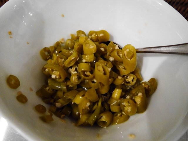 シンガポールの中華でお食事を待っている間についつい食べてしまっていた青唐辛子の酢漬け。辛いけど後を引くんですよね〜。