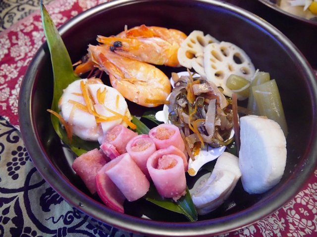 お節は、、、海老の旨煮、サーモンかぶら寿司、花れんこん、松前漬け、明太子の赤蕪巻き。ほたてとふきの煮ものは、「富貴が帆を立てて来る」という意味と聞いてから毎回作っています。