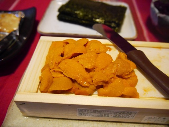 雲丹!!なんと美しい。口の中でトロリと、とろけます。海苔で巻いても美味しい。