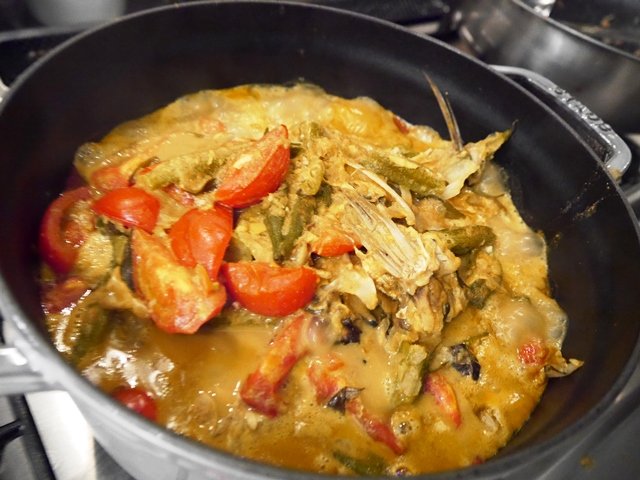 魚の頭が皿の上に立っていた!これは煮込み過ぎて形が崩れてます。が、いい出汁が出てましたよ〜。