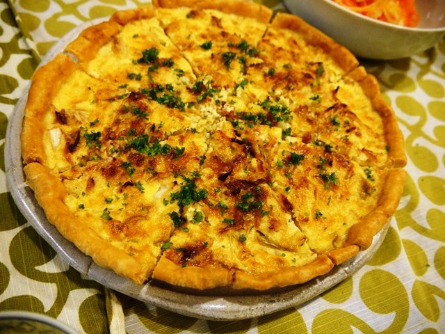 写真はベーコンとキャベツのキッシュ、です。皮はサクサク、で中身は旨みたっぷり。やっぱり美味しいー。
