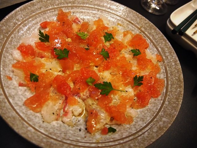 西瓜のほんのりとした甘味が、軽く酢〆されたお魚に合います。