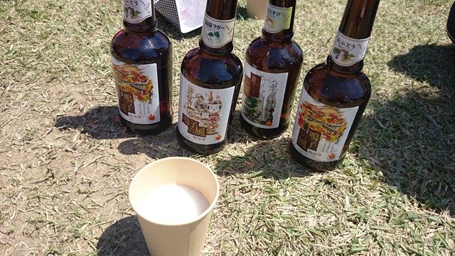日本酒試飲の前にまずはビール。地ビールで乾杯!4人とも完走♪やりました。