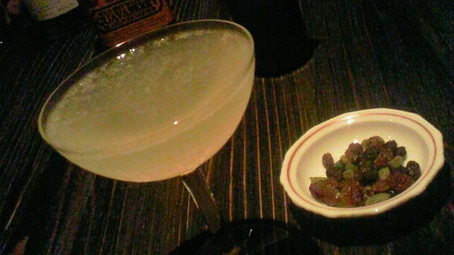 次は同じくシャンパンカクテル、フレンチ75。ジンフィズの炭酸がシャンパンという、贅沢かつ強いカクテル。入れないかな〜とドキドキしながら来たものの、雨のせいで今日はお客様あまり来ないかな、というバーテンさん。おかげで久しぶりにゆっくりお話できました。前に来たのは二年前くらいかな。でも、一時期西麻布で嫌と言われるほど顔をあわせていたので、いまだに過ぎた時間を感じません。楽しい一時でした、ありがとう!今度は着物で行きたいな〜。