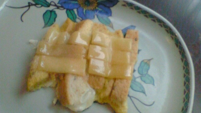 ついでに昨日の朝ご飯のご紹介。昼に食べたスタバのサンドイッチ、時間がなくて耳が食べきれなかったのですが、捨て切れず、持って帰ってました。帰ってすぐ牛乳と卵を混ぜた液に漬けて冷蔵庫へ。朝はそれをフライパンで焼き、チーズを乗せてオーブントースターで焼いてみました。甘くないフレンチトーストみたいな感じでなかなかいけます。パンの耳は昔から大好き。スタバのサンドイッチは高いけど、雑穀の入ったパンは好きです。捨てなくて良かった♪2008年02月27日