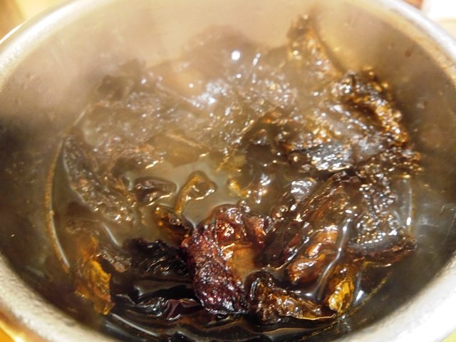 この煮汁をスープ代わりにソースに混ぜました。骨付きの鶏だったらもっとコクが出たかな。
