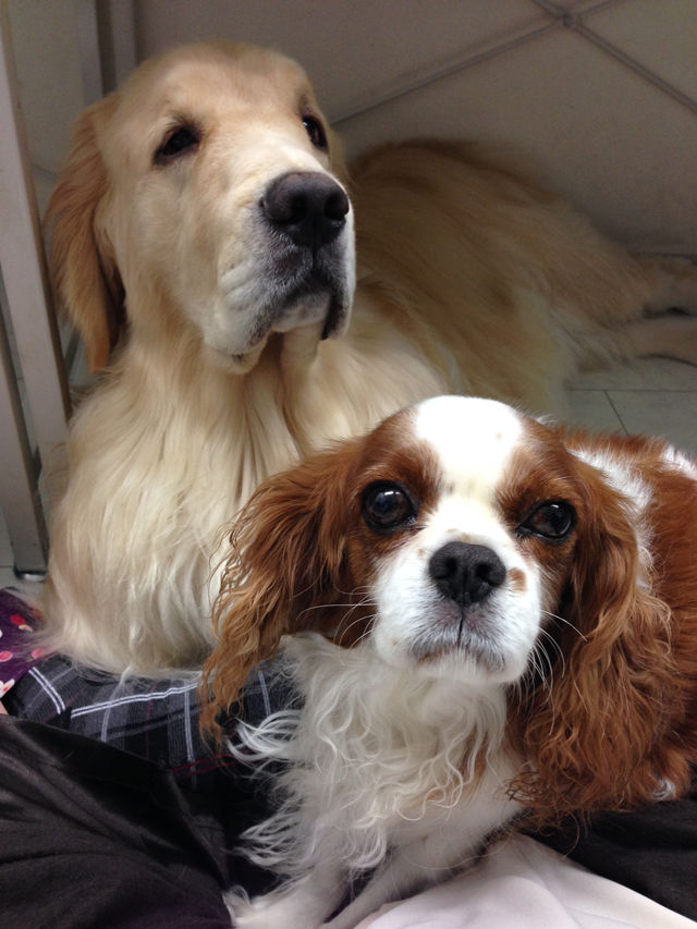 いつも最近はニャンコばかり撮影するので、少しグレてしまった(?)ワンコたち。ゴールデンレトリバーが福風(ふくかぜ)で、キャバリエが竹太郎(たけたろう)です。忘れないでー!ってね。(*´ -`)(´- `*)