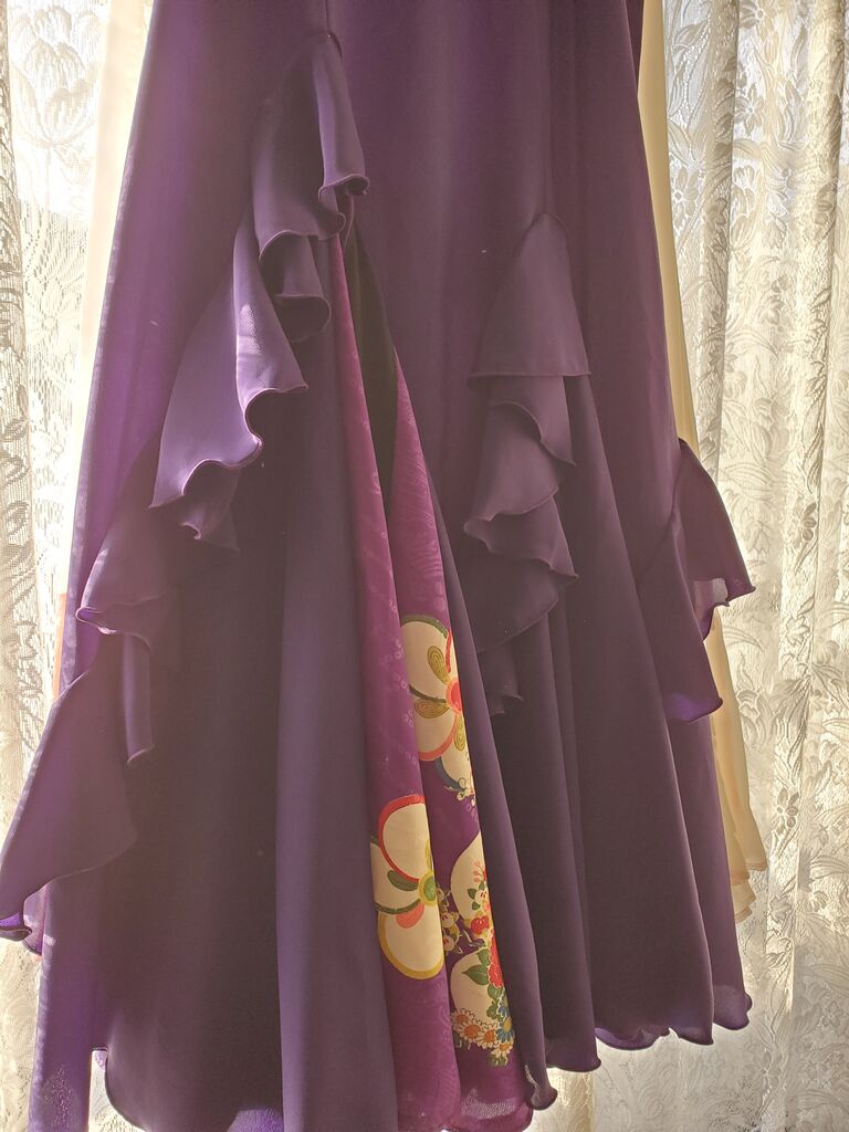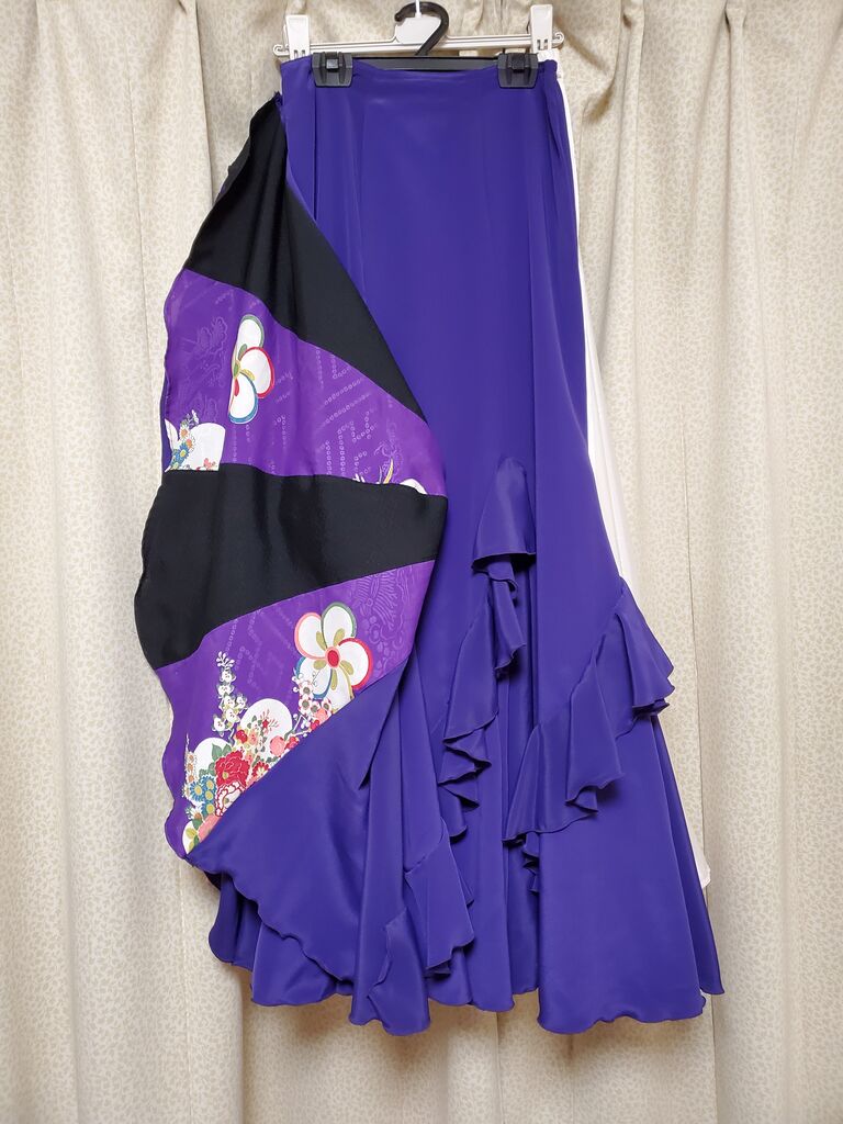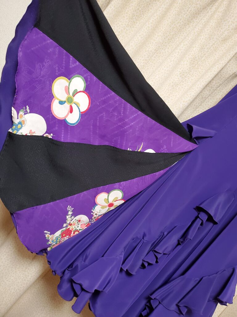 フレアーの一部に、同じ形で着物地