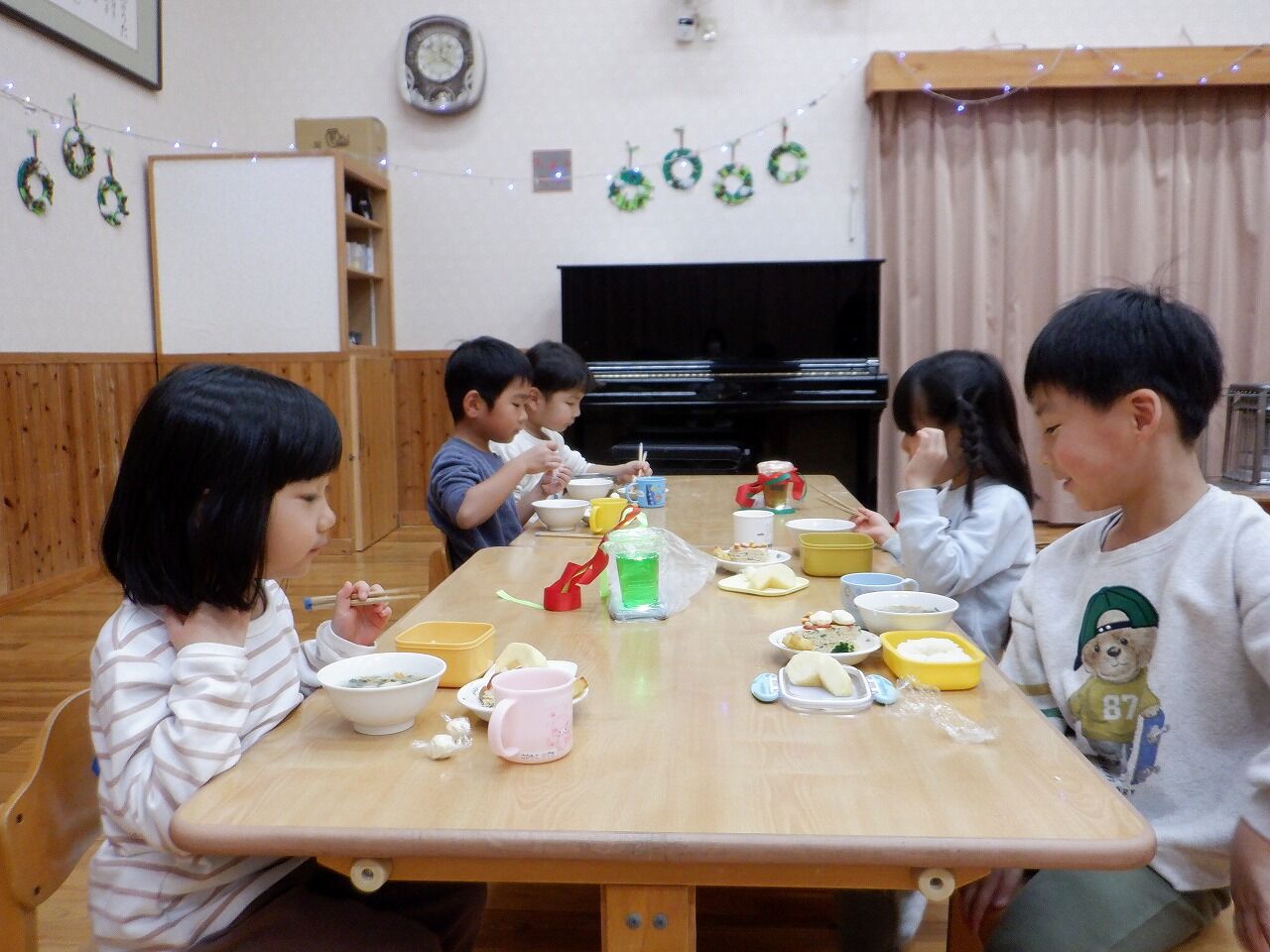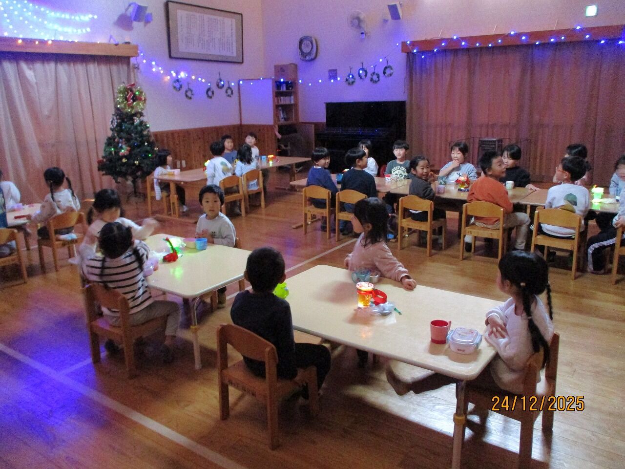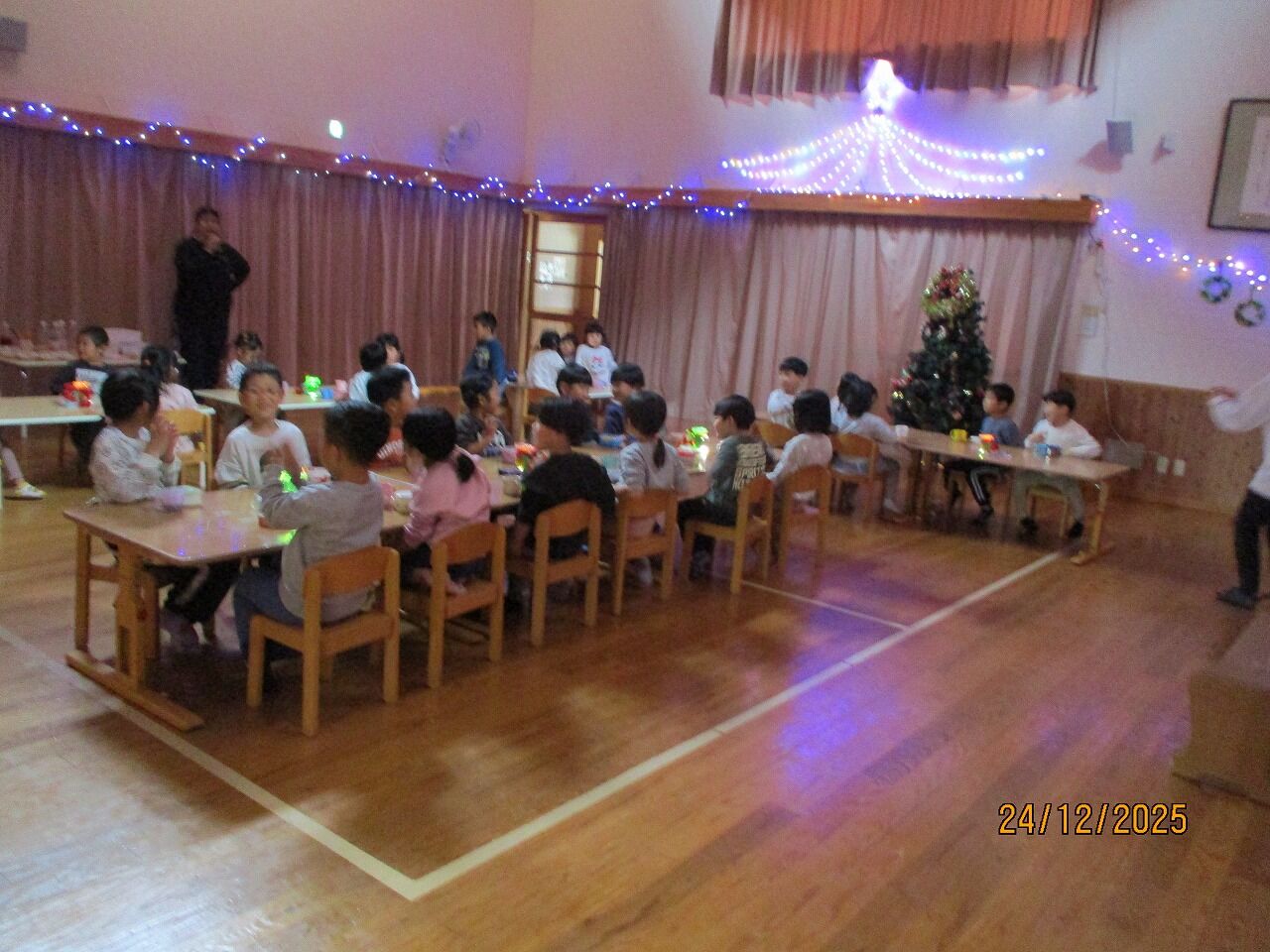 ちょうちょさん、とんぼさん、かぶとさんは、ホールでクリスマス会食