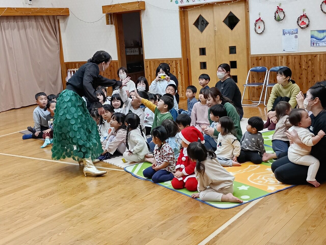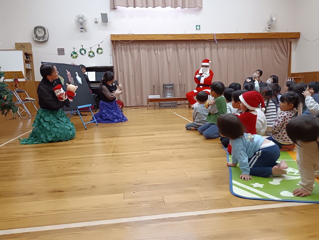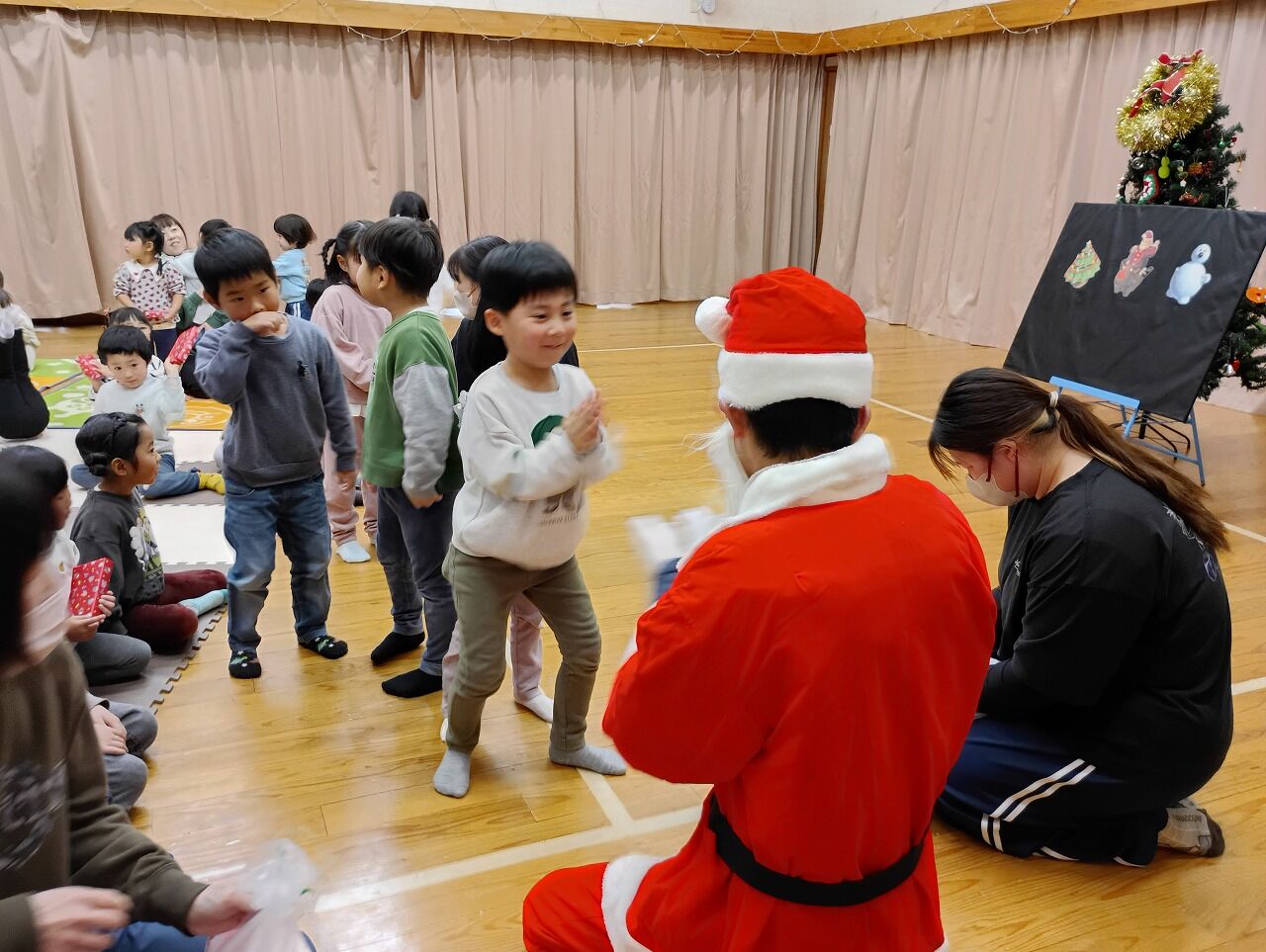 ルンバ先生たちにもう一度出てきていただき、サンタさんと一緒にミニミニリトミックを楽しみました。