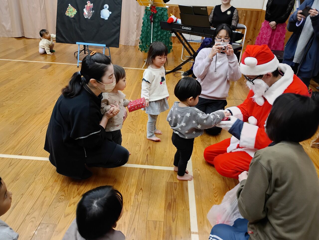 楽しい時間は本当にあっという間。忙しいサンタさんは、次のお友達のところに行かなければなりません。小さい子から順にプレゼントをいただきます。