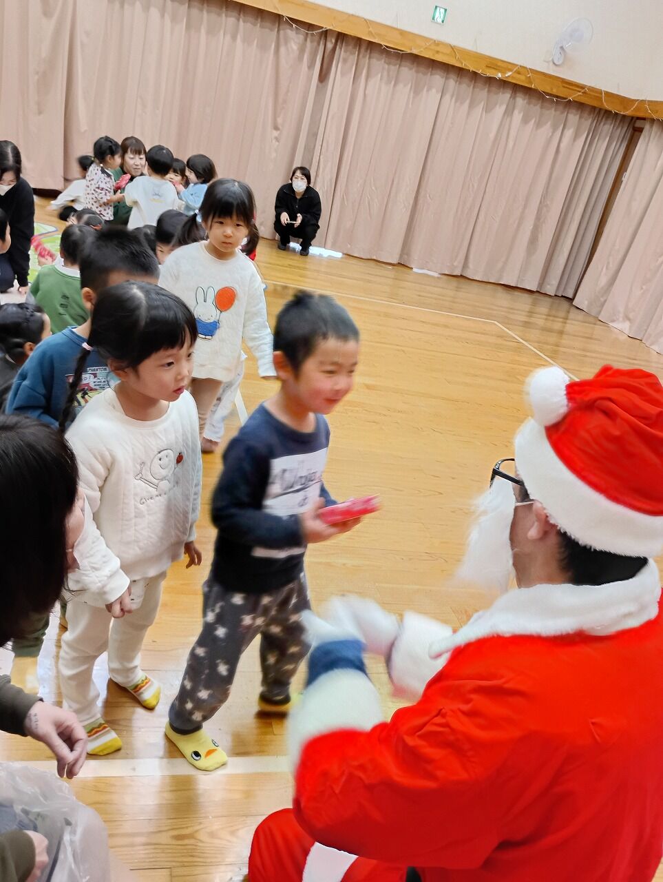 1人ずつプレゼントを手渡しして下さり、サンタさんは帰っていきました。