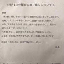 5月1日の天皇陛下奉祝行事について情報を随時あげてきます。とりあえず、7町全て屋台練出しが決まりました。宮入順は児嶋、福泊、南山河、地、仮屋、大鳥、北山河の順番です。祭では無く的形町としての行事なのでいつもは最後に宮入する福泊が2番目!!7町会議でくじ引きした ...