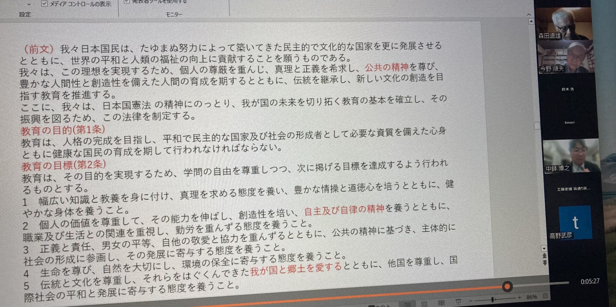★この講演会(オンライン憲法塾)に今回初めて参加させていただきました。「日本国憲法と旧教育基本法」と題し、森田道雄氏から報告がありました。