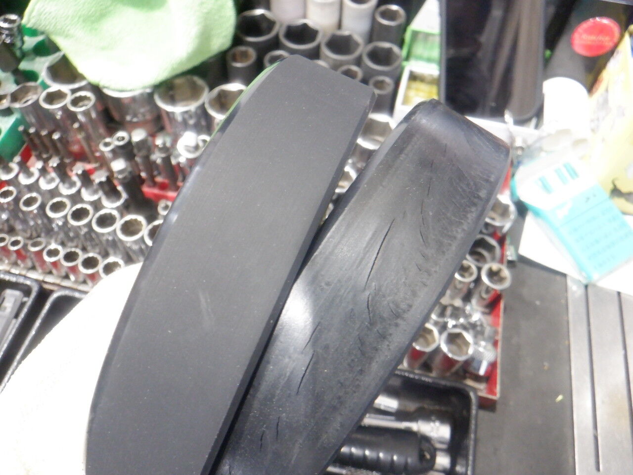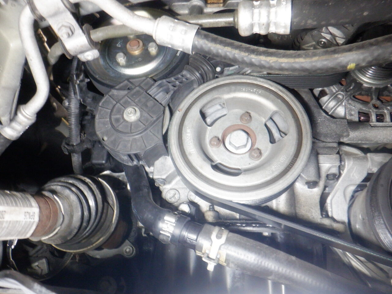 ひび割れのポンププーリーも交換