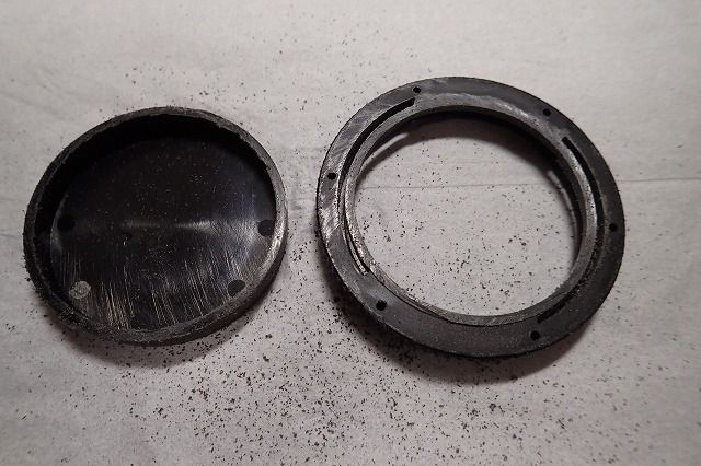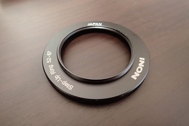 こんなんで新しいモンを買わせようとするINONの策略にハマって堪るか、ということでTG-3の純正ハウジング(PT-056)用にADマウントを付けられるマウントベースを作ってみることにしました。用意したのはINONの52-67ステップアップリング(1,493円)と以前にワイコンを買った時に付いてきたプラスチックのカバー。