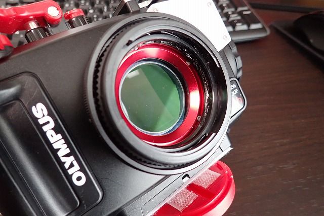 じゃーん!完成しました。ハウジングのポート部分にねじ込むとこんな感じです。で、ワイコンを付けてみると、